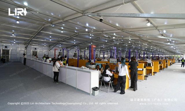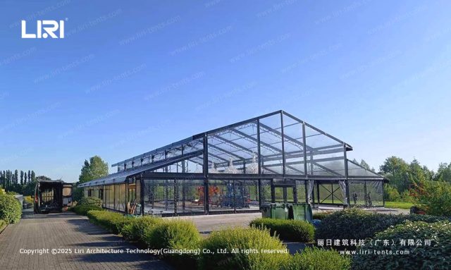 此外,丽日建筑科技的婚礼篷房可根据现场环境和面积进行定制。专业的设计团队可以准确规划所需的帐篷尺寸,以容纳走廊、座位、餐桌、舞台等布置空间。还可以解决临时厕所、厨房、休息区和化妆间等需求,为中高档婚庆篷房打造一个无后顾之忧的场所。